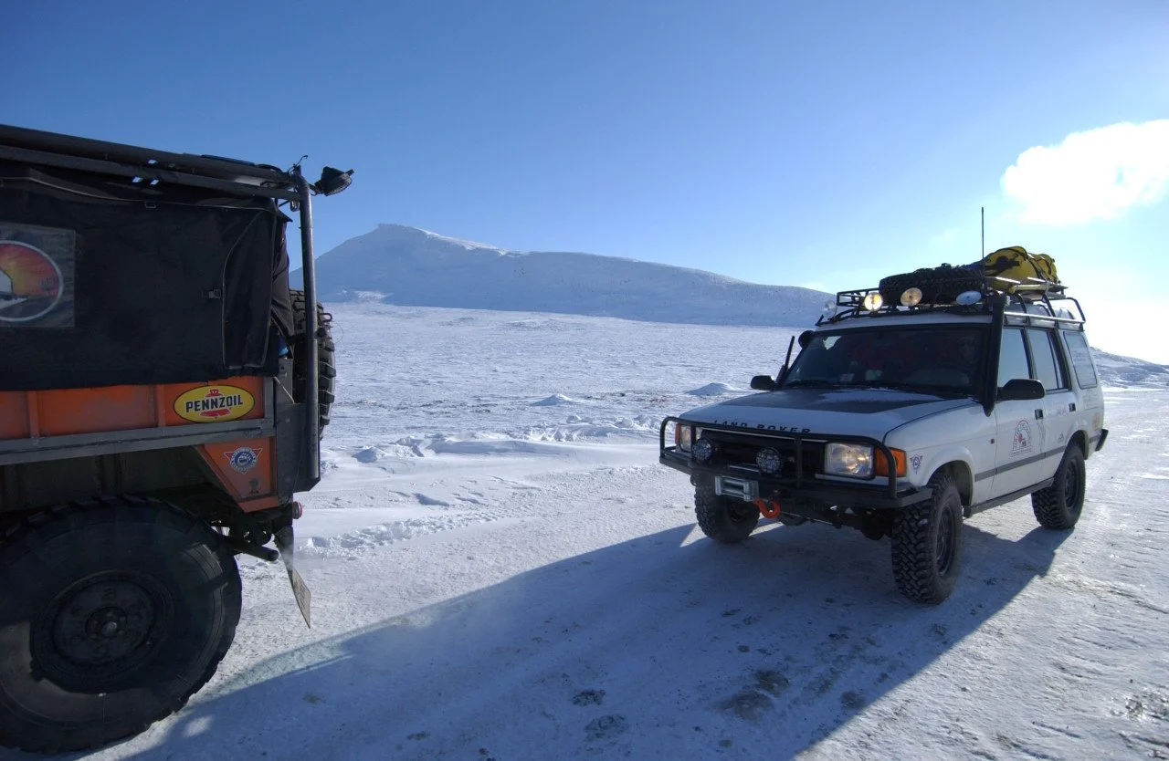 DRIVE THE GLOBE | Overland Adventures went to the Arctic Circle and beyond! On March 8, 2007 we departed from Edmonton Alberta Canada and headed North. The ultimate goal was the Arctic Circle via the Dempster Highway. The trek continued over winter ice roads and ultimately reached Tuktoyaktuk, a small village on the Beaufort Sea (part of the Arctic Ocean). Along the way the expedition travelled through the beautiful scenery of Northern British Columbia to Whitehorse, a small town in the Yukon Territory. It then continued through the gold rush town of Dawson City and then on to Inuvik. A large distance was covered in a fairly short period of time. All told, over 4800 miles were driven on this adventure of a lifetime.