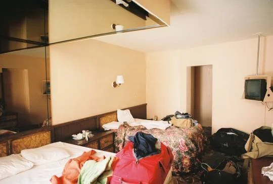 The hotel was a breathtaking structure. Built in about 1965, and never redecorated; the shower curtain reminded me of a trash bag; mirrored ceiling, hourly rates available- you know the drill. An unmistakable smell: something like bingo night at the local retirement home. Sweet dreams…