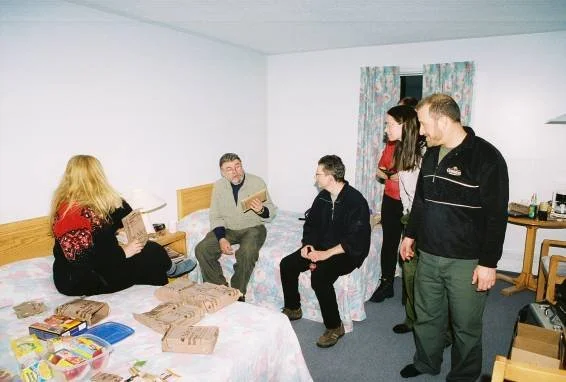 In this small (I'm not sure if small really conveys it) community, the restaurant and motel provide significantly more limited service than the usual Holiday Inn. No problem; there is a ready supply of (slightly frozen) MREs to keep the crew fed. Other items retrieved from behind seats and the bottom of coolers rounded out the menu for the evening.