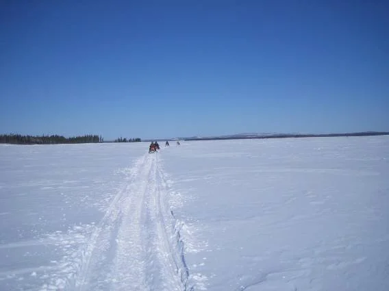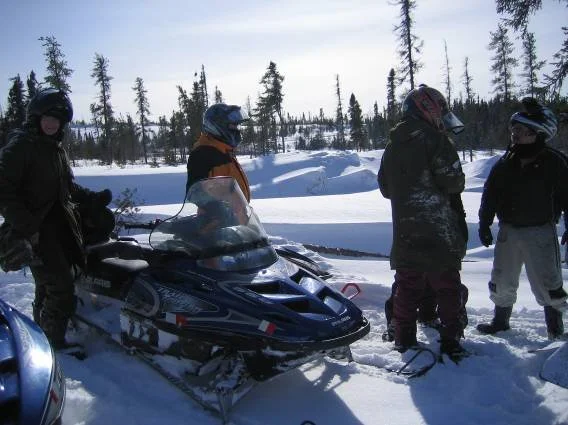One of the group members negotiated a deal for snow mobile rentals from the carpenter repairing the roof of the hotel. After several hours of: not going over safety concerns, not establishing insurance coverage and not receiving comprehensive operation instruction, we were off to meet our maker. First stop: the gas pumps. Several minutes (and swearing in Cree to the pump operator for spilling fuel on a sled) and we were finally on our way.